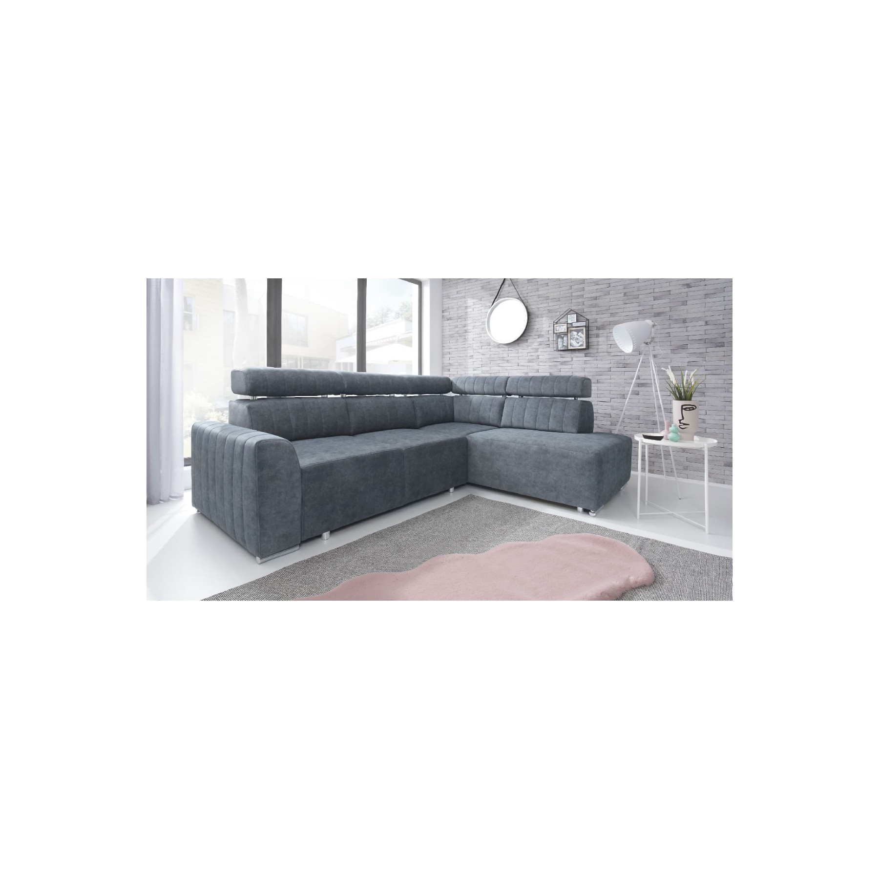 Zaletą narożnika CORSO jest fakt, iż posiada on funkcję spania oraz rozkłada się w łatwy sposób, ponieważ wyposażony jest w funkcję PUMA oraz podnośnik gazowy.