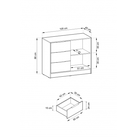 Komoda z lamelami NELLY to modna propozycja do salonu, sypialni bądź przedpokoju. Lamele to hit aranżacyjny. Dodają wnętrzu klasy oraz elegancji. Komoda dostępna w trzech designerskich wybarwieniach. Dąb Artisan nada wnętrzu przytulnego klimatu, Grafit elegancji a Szarość klasy. Mebel dzięki szufladom oraz półkom jest bardzo praktyczny. W połączeniu z szafą Nelly stworzysz wymarzoną aranżację.